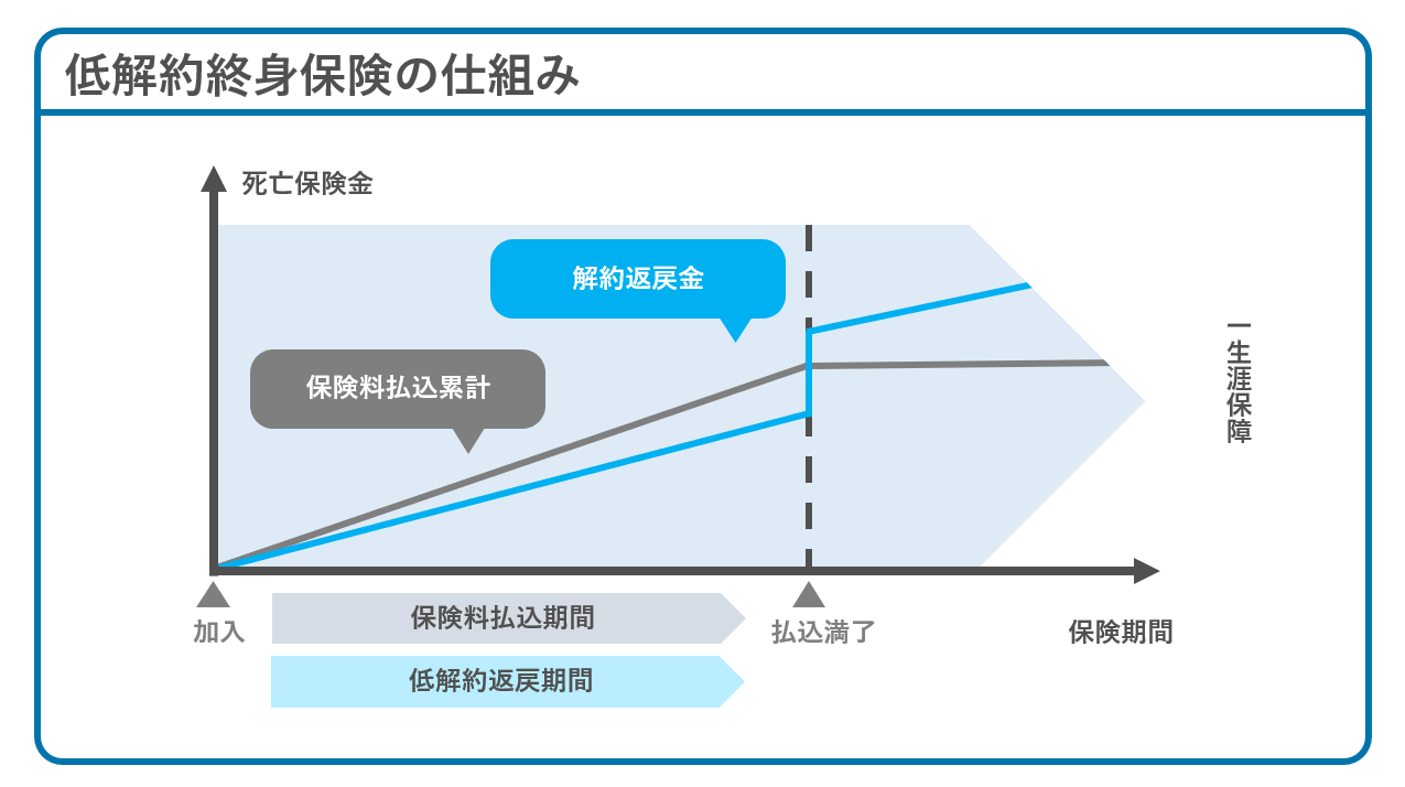 低解約返戻金型終身保険は、保険料を支払っているあいだの解約返戻金について、通常よりも低く設定された終身保険です。