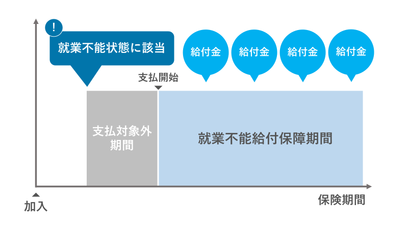 支払い対象外の期間(免責期間)が設定されている