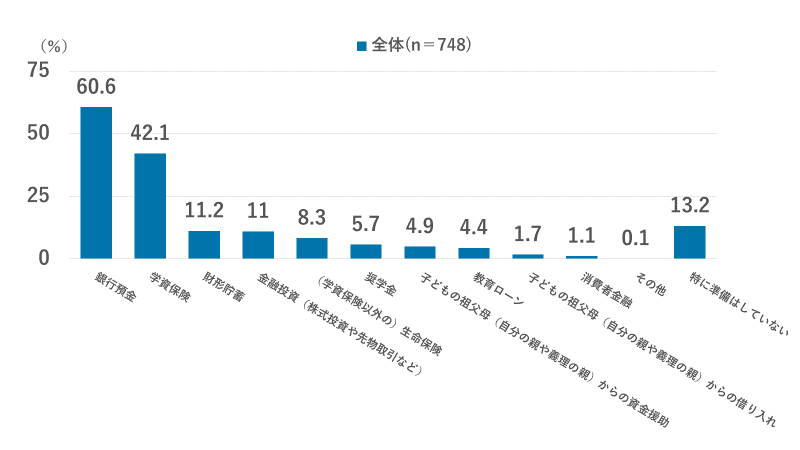 子どもを大学などへ進学させるための教育資金を準備している方法