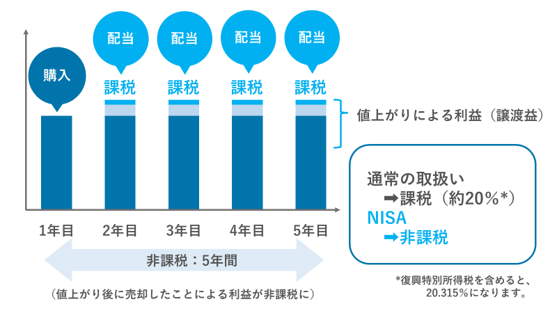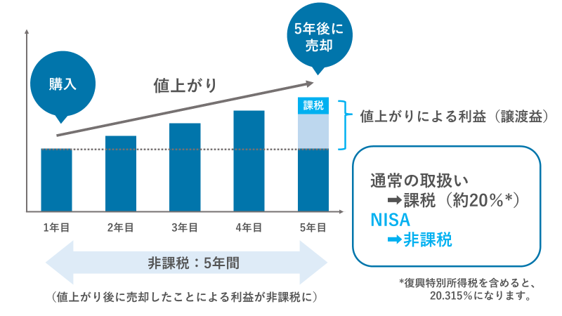 NISAのイメージ①購入した株式・投資信託等が値上がりした後に売却した場合