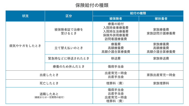 以下では、公的医療保険制度で受けられる代表的な給付内容を紹介します。